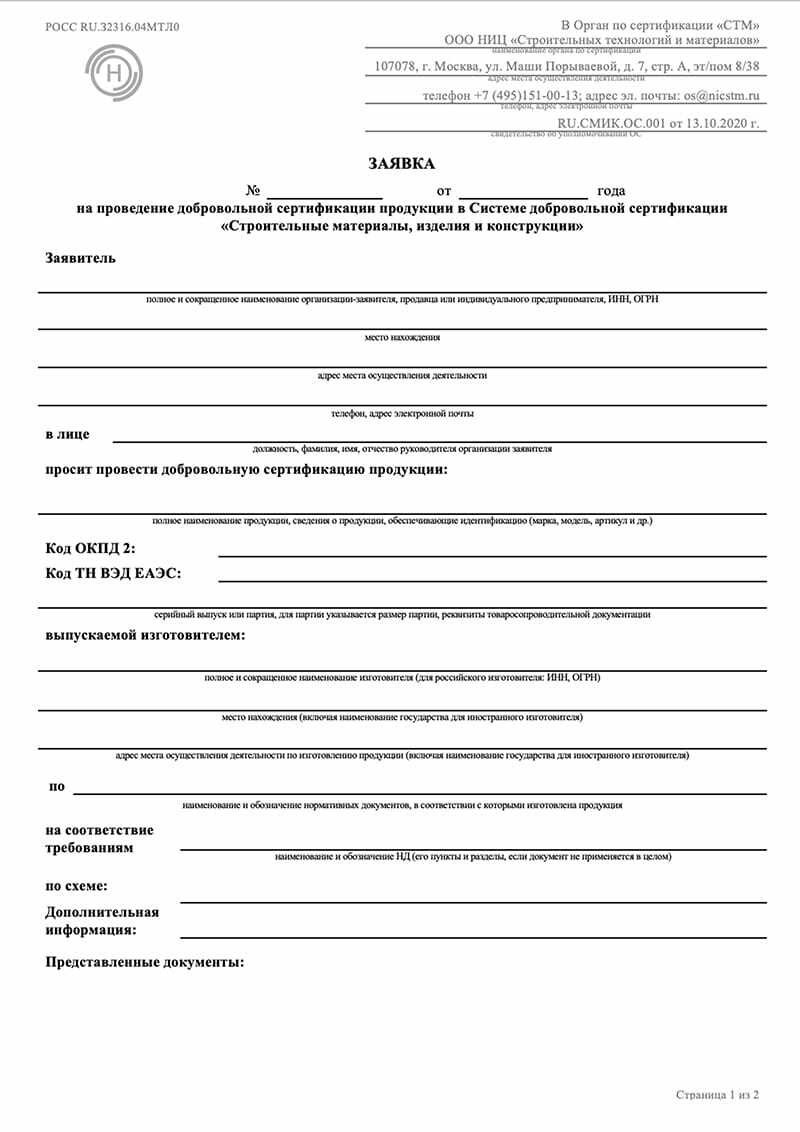 Форма добровольного сертификата регламентирована Системой добровольной сертификации.